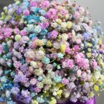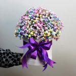 гипсофила радужная эквадор – 45 шт.Шляпная коробка – 1 шт.Оазис флористический – 1 шт.Лента атласная – 1 шт.любовь флориста (бесплатно) – 1 шт.инструкция по уходу за цветами – 1 шт.