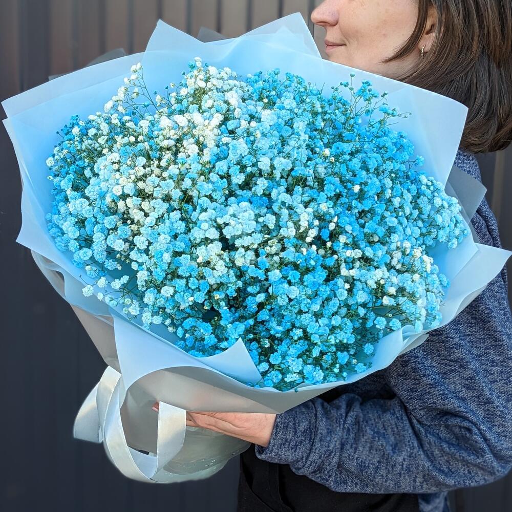 Большой пышный монобукет из голубой гипсофилы