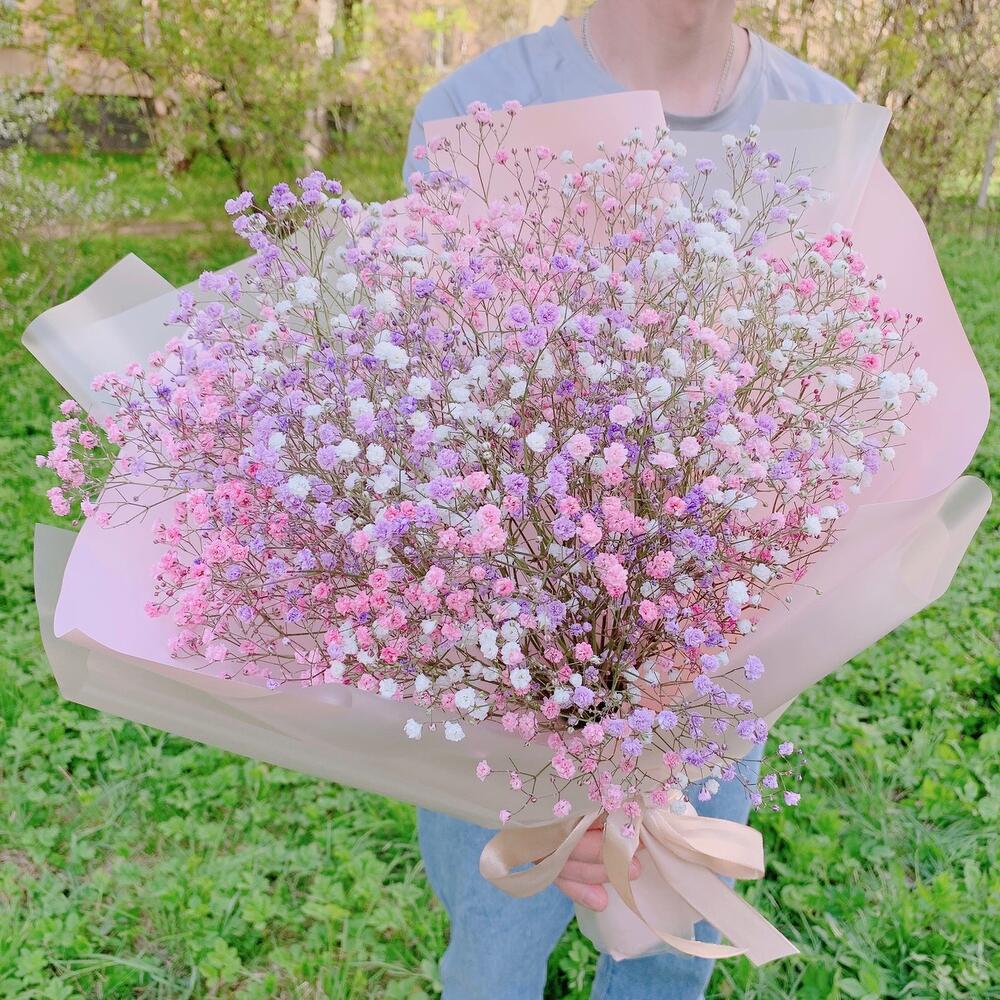 Воздушный букет радужной гипсофилы