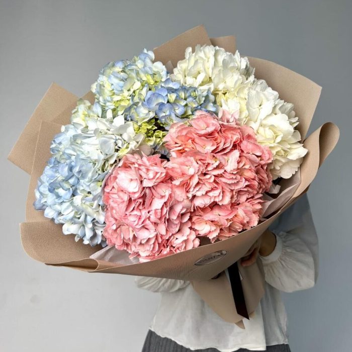 “Эвкалиптическая роскошь” гортензия и пионовидная кустовая роза