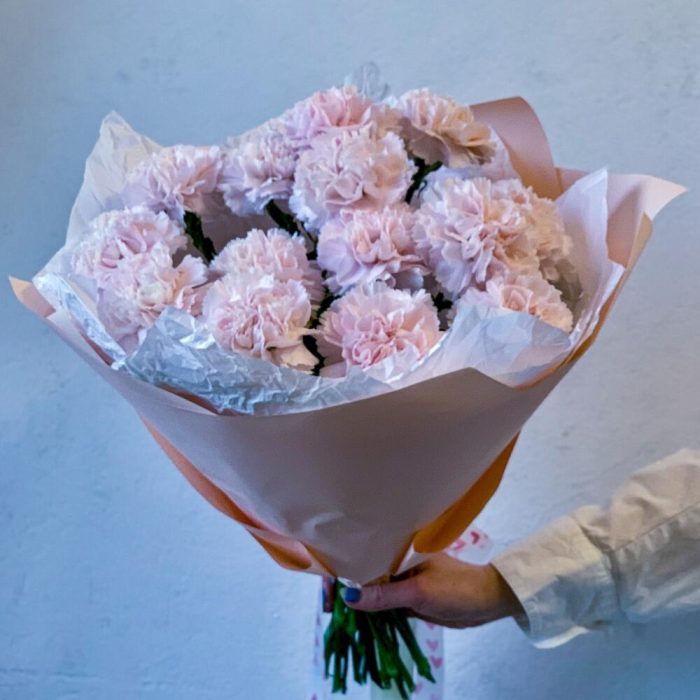 Лента – 1 шт.Тишью – 1 шт.Пленка – 1 шт.Гвоздика одноголовая – 15 шт.