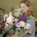 Лавандовый раф – Букет с пионами и луком