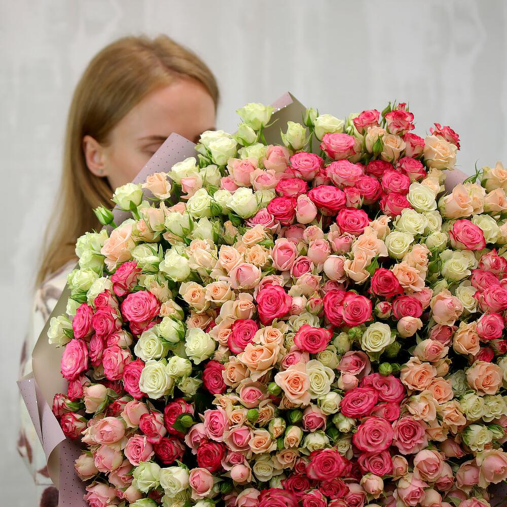 Букет из 101 высокой кустовой розы 60-70 см в стильной упаковке