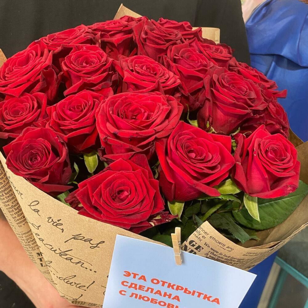 Лента атласная – 2 шт.Крафт – 3 шт.роза россия красная – 21 шт.