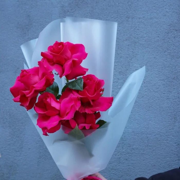 Букет из 5 малиновых французских роз