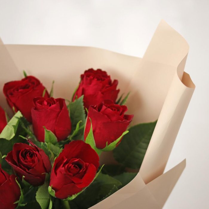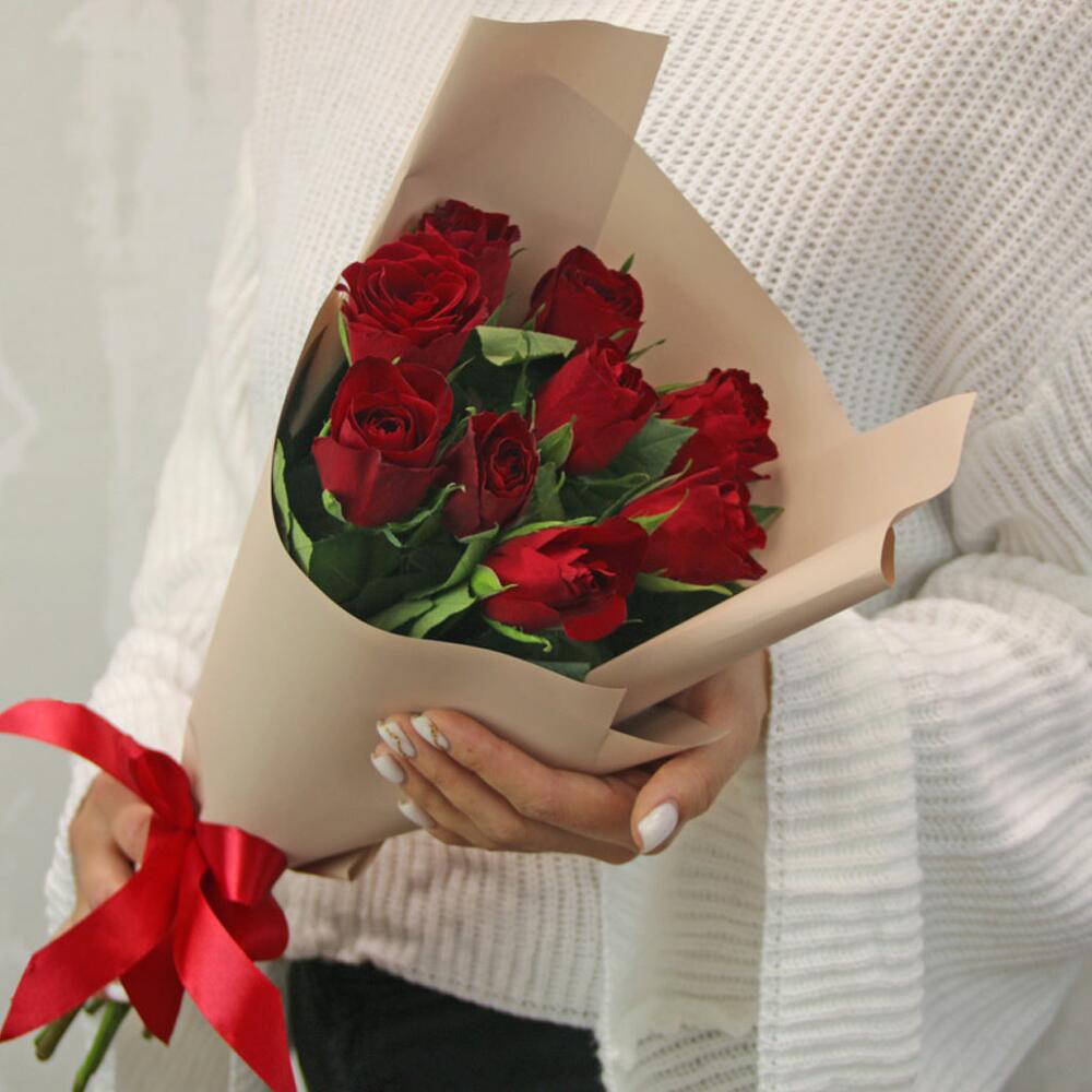 Букет из 9 красных роз в стильной упаковке