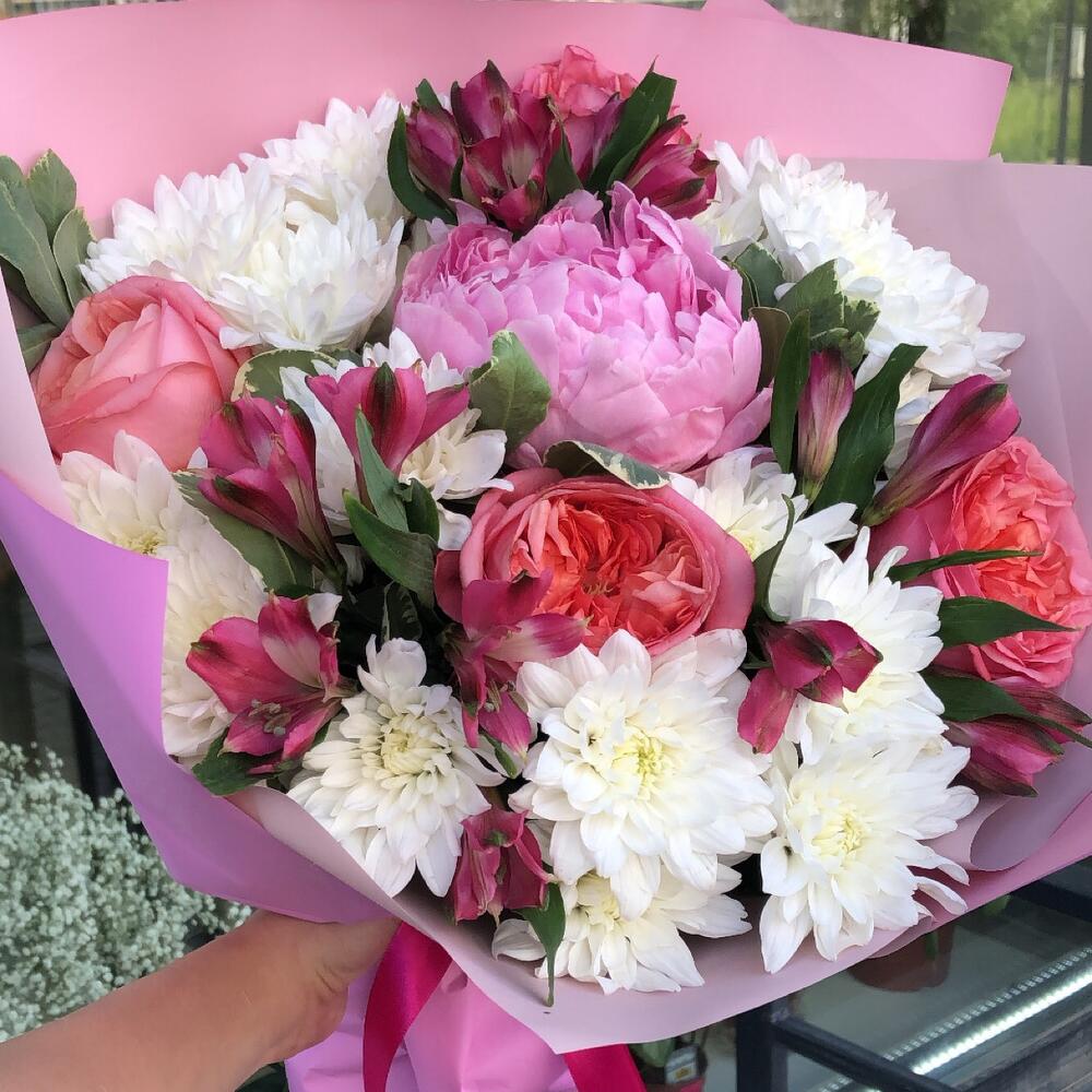 Категорий: Альстромерии, Кустовые розы, Пионы, Розы, Хризантемы