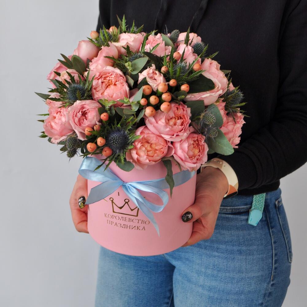 Пионовидные розы в окружении ягод гиперикума, голубые колючки делают этот букет просто волшебным.Как быстро проносится прекрасное лето❤️ радуйте своих любимых яркими летними букетам.Красочная композиция ,прекрасно подойдёт в подарок учителю Такую композицию можно подарить по любому поводу, она станет прекрасным украшением стола, интерьера, красива со всех сторон. Подойдёт в подарок на новоселье, день рождения, юбилей и просто порадовать дорогого человека