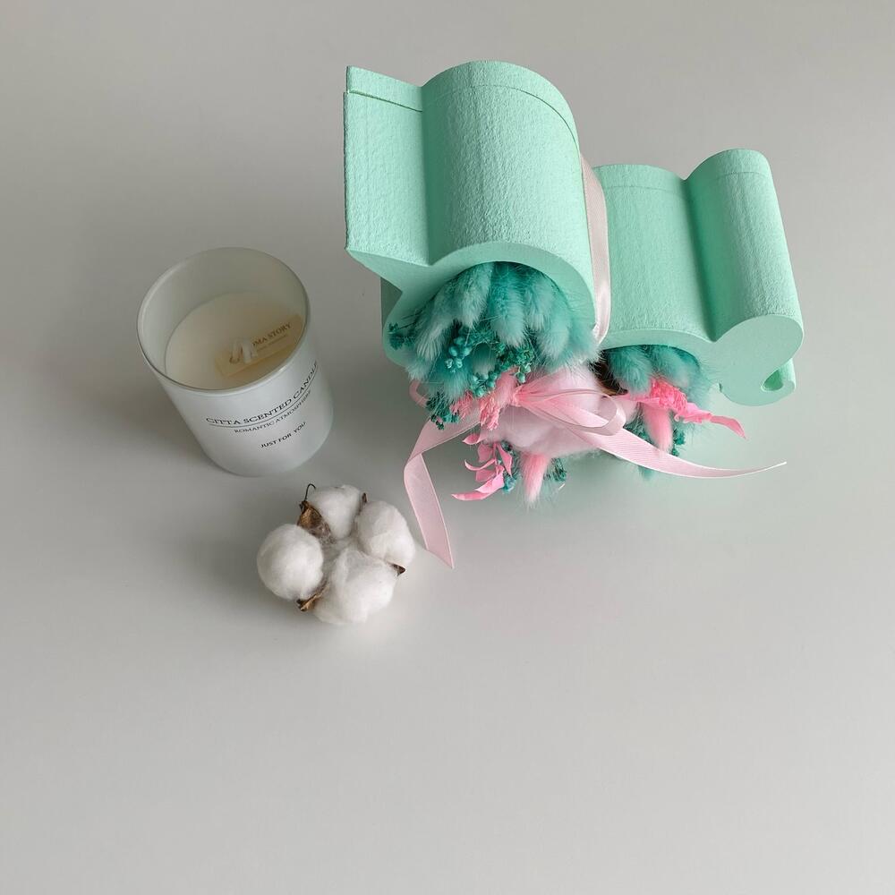 Хлопок (сухоцвет) – 1 шт.Лагурус (сухоцвет) – 19 шт.Рускус – 2 шт.Гипсофила – 7 шт.