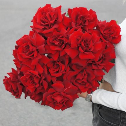 Букет Розовые сладость из 7 веток кустовой пионовидной розы в черном оформлении